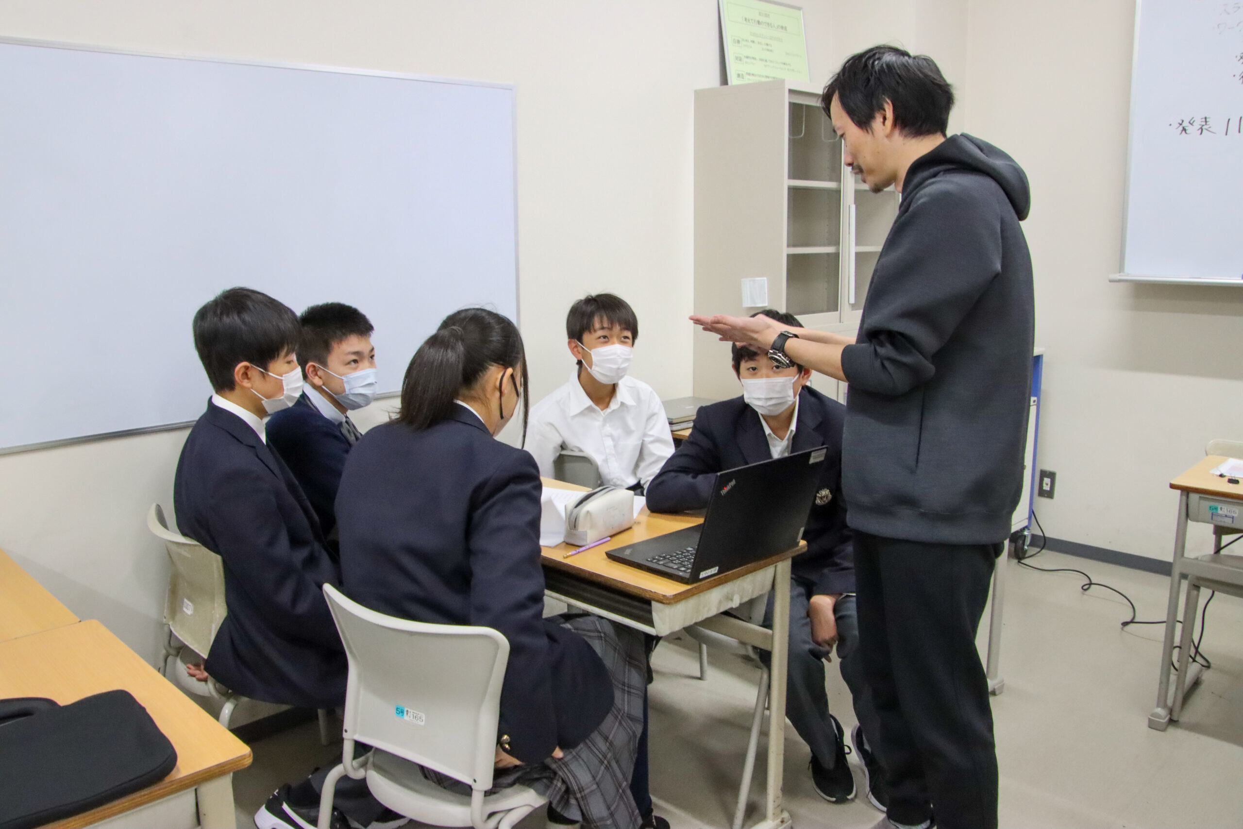 生徒たちはチームに分かれて、発表内容を穴埋め式のワークシートに書き込み、発表する箇所を各自役割分担。チームごとに用意したスライドを用いて発表を行なった。